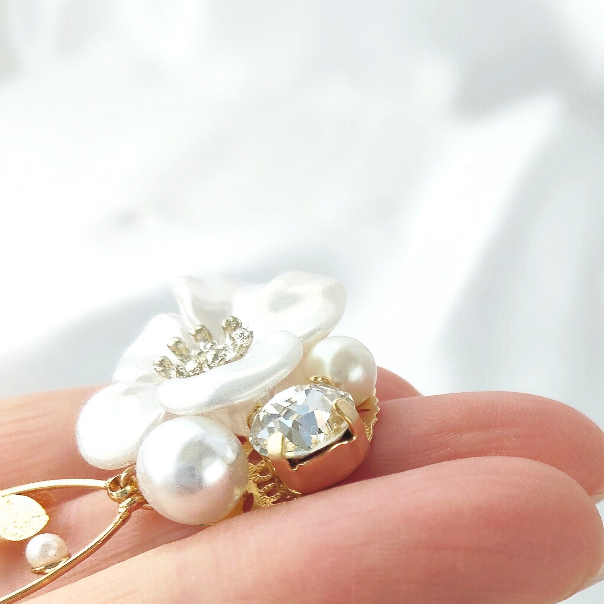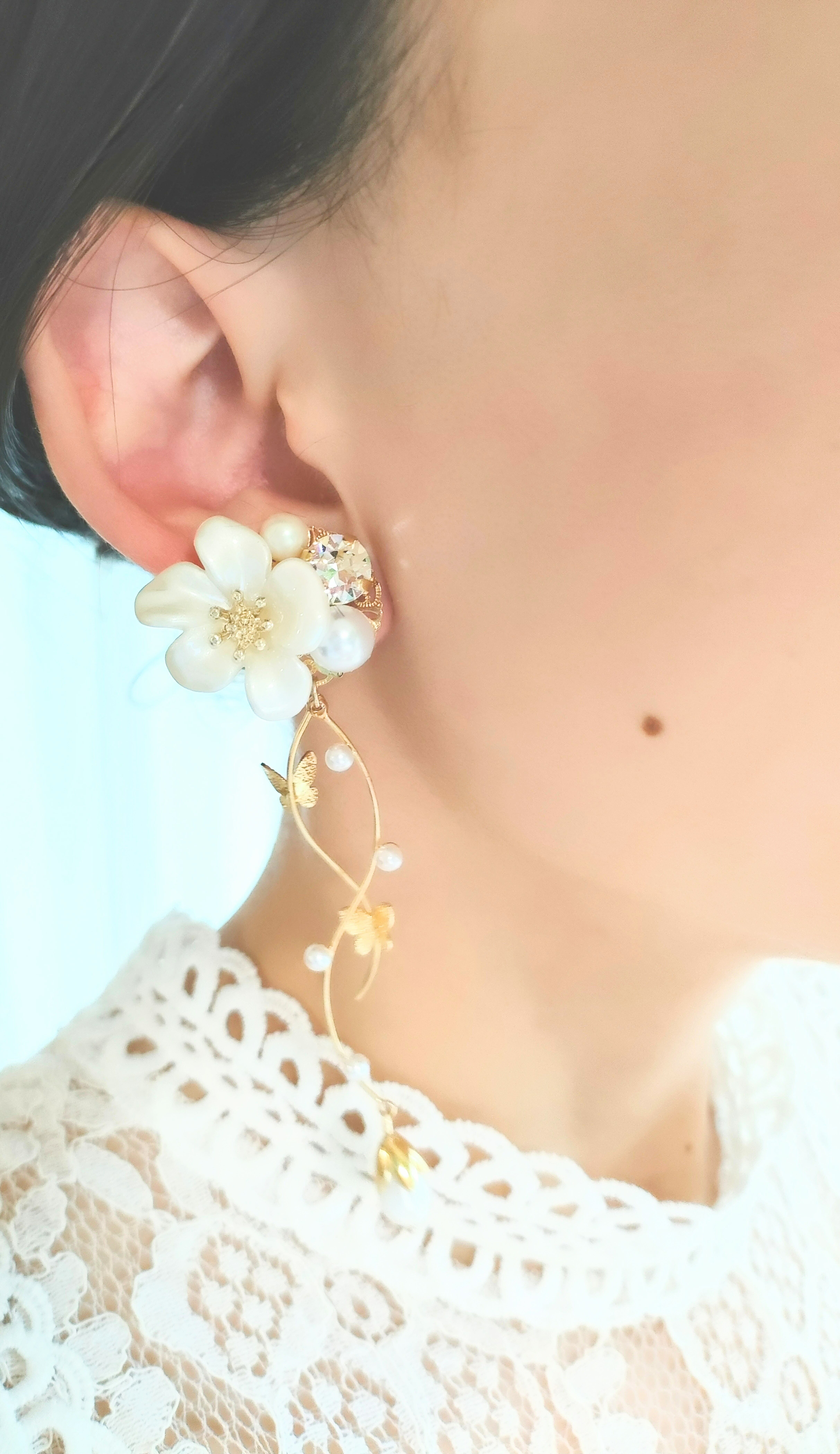 揺れるパールと蝶々が